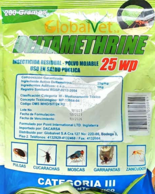 Deltamethrine es un insecticida sintético que pertenece al grupo de los piretroides. Su principal ventaja es su potente acción, que afecta el sistema nervioso de los insectos por contacto e ingestión. Gracias a su eficacia, es capaz de controlar una amplia variedad de plagas, como moscas, pulgones, chinches, ácaros y otros insectos que pueden amenazar los cultivos o los espacios domésticos. Esta versatilidad lo convierte en una herramienta indispensable para agricultores, empresas de control de plagas y propietarios de viviendas.