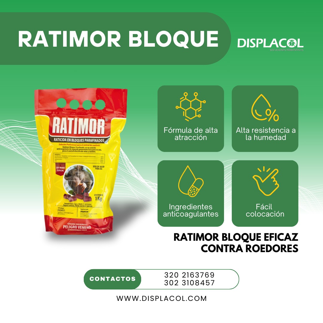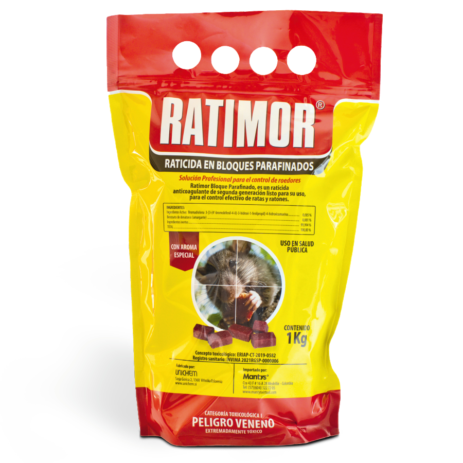 Ratimor Bloque contra roedores, es una solución confiable que garantiza resultados óptimos en la erradicación de plagas. Sus principales características incluyen: